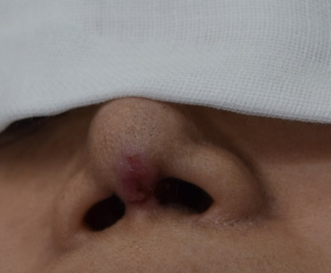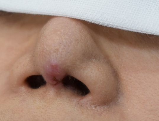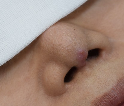 先日、鼻プロテーゼ露出後、鼻尖傷跡形成の