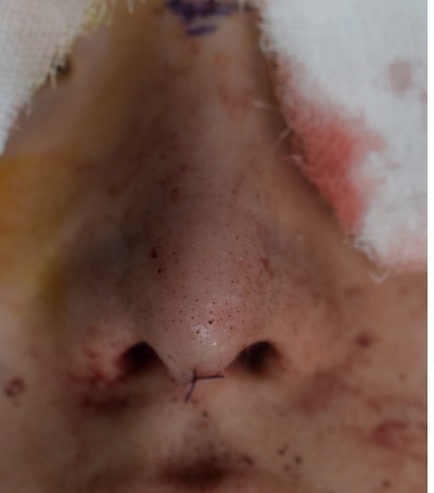 鼻尖縮小、PDSプレート+耳介軟骨の固定、