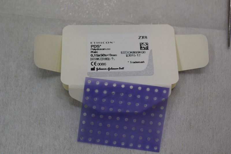 耳介軟骨とPDSプレートを組み合わせて