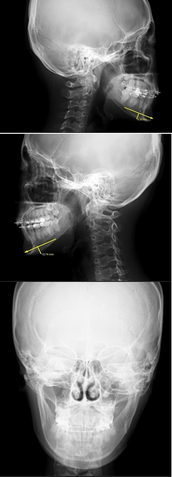左右ともに下顎骨の中央部あたりに丸みがあり、