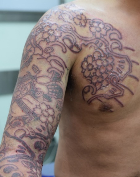 入れ墨部位全体に注射しました。