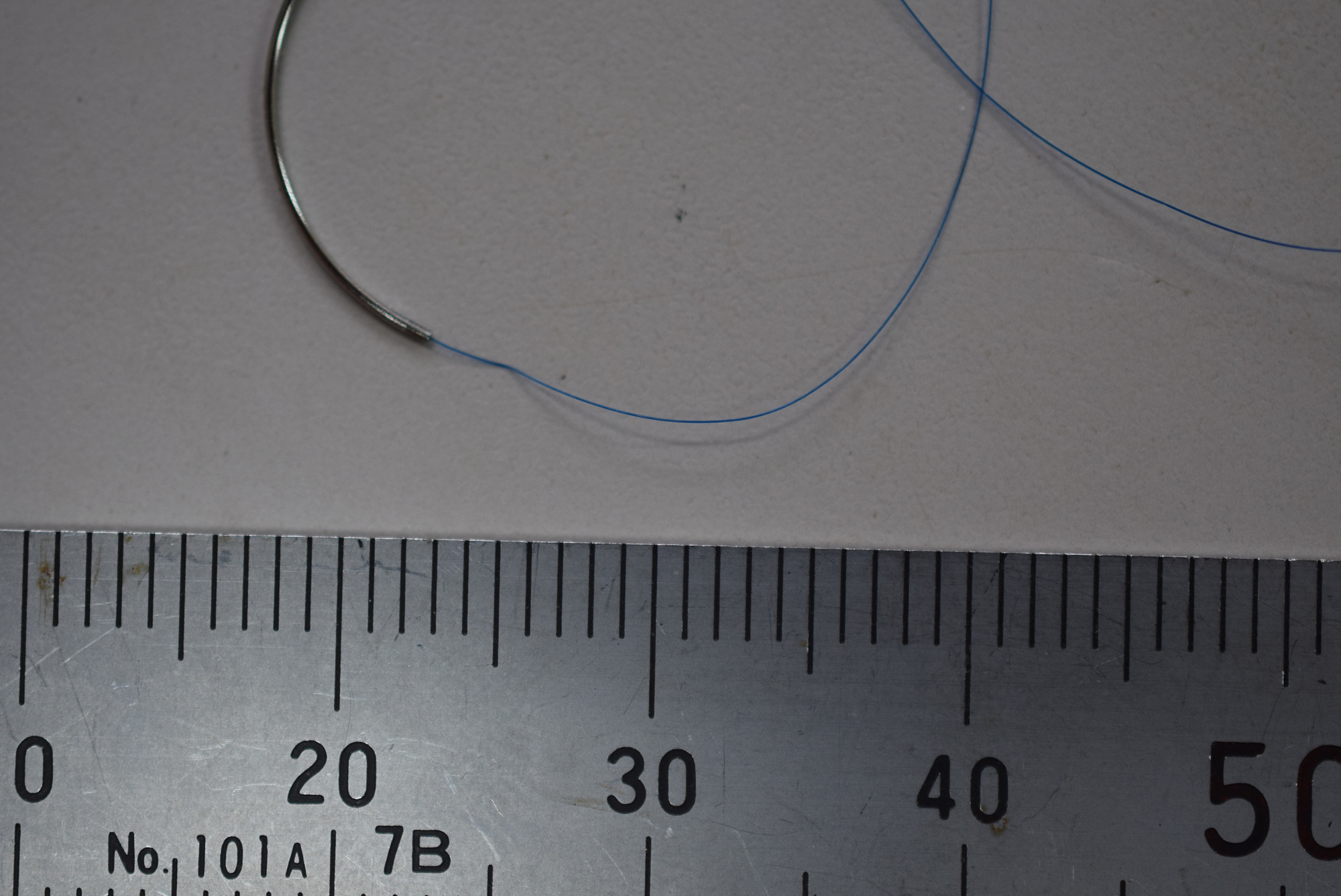 写真は、当院で使用している(直径約0.5mm)のナイロン製の埋没糸です。