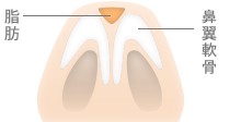 左右の鼻翼軟骨と皮膚との間には、軟部組織はほとんど存在しません。