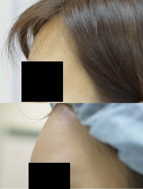 凹凸なく丸みのあるオデコになっていて、傷跡もほとんどわかりません。